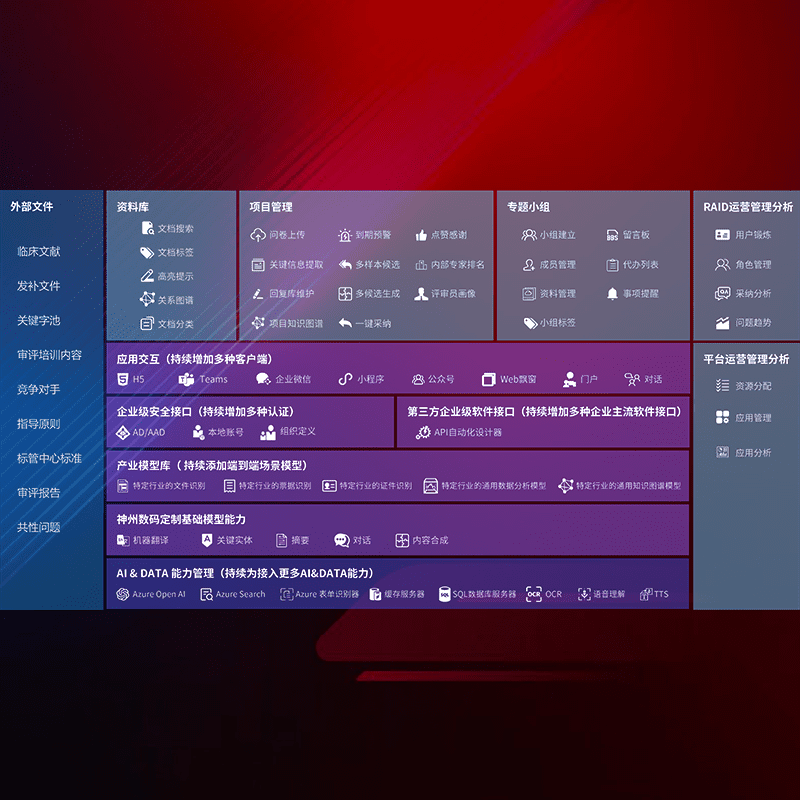 医疗器械产品上市前,,,要熟悉严格与繁复评审标准,,,整理分析监管机构指导文件中的海量信息。。。。企业急需一个智能化解决方案,,提升知识管理效率,,提高评审通过率,,,以提升其市场竞争力。。。